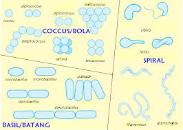 - Bentuk tubuh bakteri dibagi menjadi tiga kategori besar yaitu Coccus, Bacillus, dan Spirilum. Coccus berbentuk seperti bola, Bacillus berbentuk seperti batang atau silinder sedang Spirilum berbentuk lengkung atau spiral.